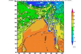 ဘင်္ဂလားပင်လယ်အော်အ‌ခြေအနေ။ ကပ္ပလီပင်လယ်ပြင်တွင် တိမ်အနည်းငယ် ဖြစ်ထွန်းနေပြီး ဘင်္ဂလားပင်လယ်အော်တွင် တိမ်အသင့်အတင့်မှ တိမ်ထူထပ်နေပါသည်။