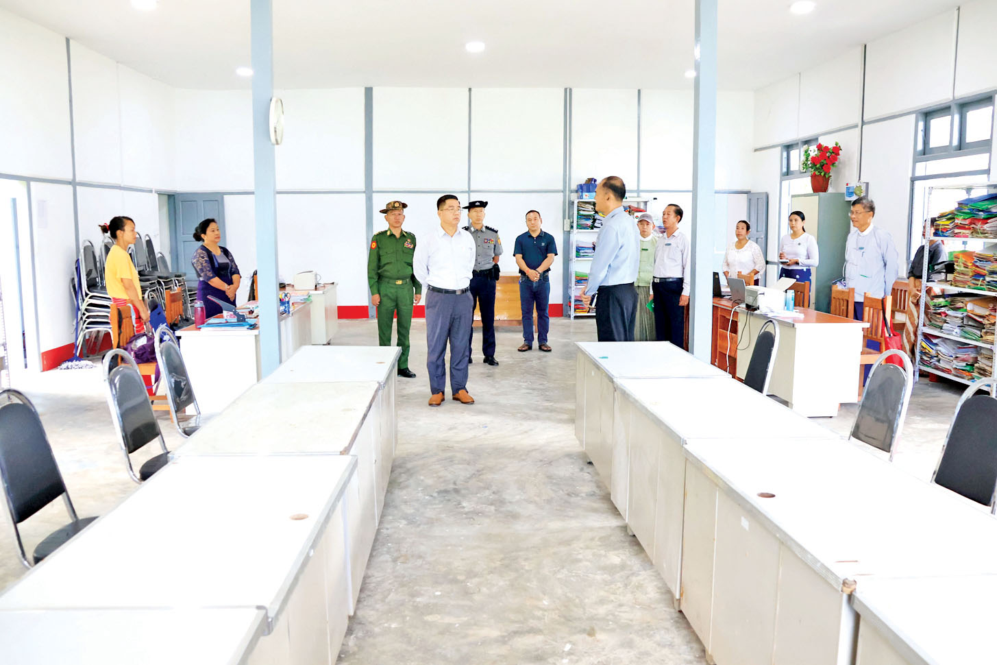 ယင်းနောက် ပြည်နယ်မွေးမြူရေးနှင့် ကုသရေး ဦးစီးဌာနသို့ရောက်ရှိကာ အကြမ်းဖက်သမားများကြောင့် ထိခိုက်ပျက်စီးခဲ့သည့် ပြည်နယ်နှင့် ခရိုင်ရုံးများ၊ ဝန်ထမ်းအိမ်ရာများ ပြန်လည်ပြုပြင်ဆောင်ရွက် ပြီးစီးမှုနှင့် ရုံးများ ဖွင့်လှစ်မှုအခြေအနေကို ကြည့်ရှုစစ်ဆေးရာ ပြည်နယ်ဝန်ကြီးချုပ်က ဝန်ထမ်း အိမ်ရာများတွင် ဝန်ထမ်းများ စနစ်တကျ ပြန်လည် နေရာချထားရန်၊ ရုံးနှင့်ရုံးပတ်ဝန်းကျင် သန့်ရှင်းသာယာရေး ဆောင်ရွက်ရန်နှင့် ပြည်နယ်၏ မွေးမြူရေးကဏ္ဍ ပိုမိုဖွံ့ဖြိုးတိုးတက်အောင် ကြိုးပမ်း ဆောင်ရွက်ကြရန် မှာကြားသည်။