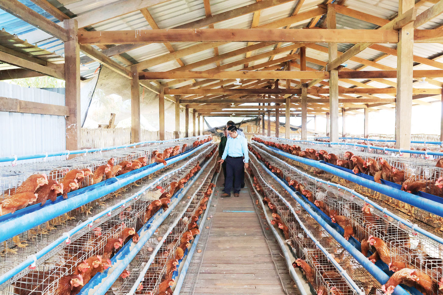 ထို့နောက် လွိုင်ကော်မြို့ မြေနီကုန်းရပ်ကွက်ရှိ အသားတိုးကြက် မွေးမြူရေးခြံသို့ သွားရောက်ကာ အသားတိုးကြက်သားပေါက်များ မွေးမြူထားရှိမှု၊ ပြုစုထားရှိမှု၊ လွိုင်ကော်မြို့ ပန်ကန်းတိုးချဲ့ ရပ်ကွက်ရှိ ဥစားကြက်မွေးမြူရေး ခြံများ၌ ဥစားကြက်များ မွေးမြူ အောင်မြင်ဖြစ်ထွန်းနေမှု၊ ပန်ကန်းတိုးချဲ့ရပ်ကွက်ရှိ မွေးမြူရေးခြံများ ဈေးကွက်သို့ လွယ်ကူချောမွေ့စွာ တင်ပို့နိုင်ရေး ပြည်နယ်ဘဏ္ဍာ ရန်ပုံငွေဖြင့် ဆောင်ရွက်သည့် အမာခံကျောက်လမ်း အရှည် ပေ ၁၁၀၀၊ အကျယ် ၁၂ ပေ ခင်းကျင်း ပြီးစီးမှုအခြေအနေကို ကြည့်ရှုစစ်ဆေးသည်။