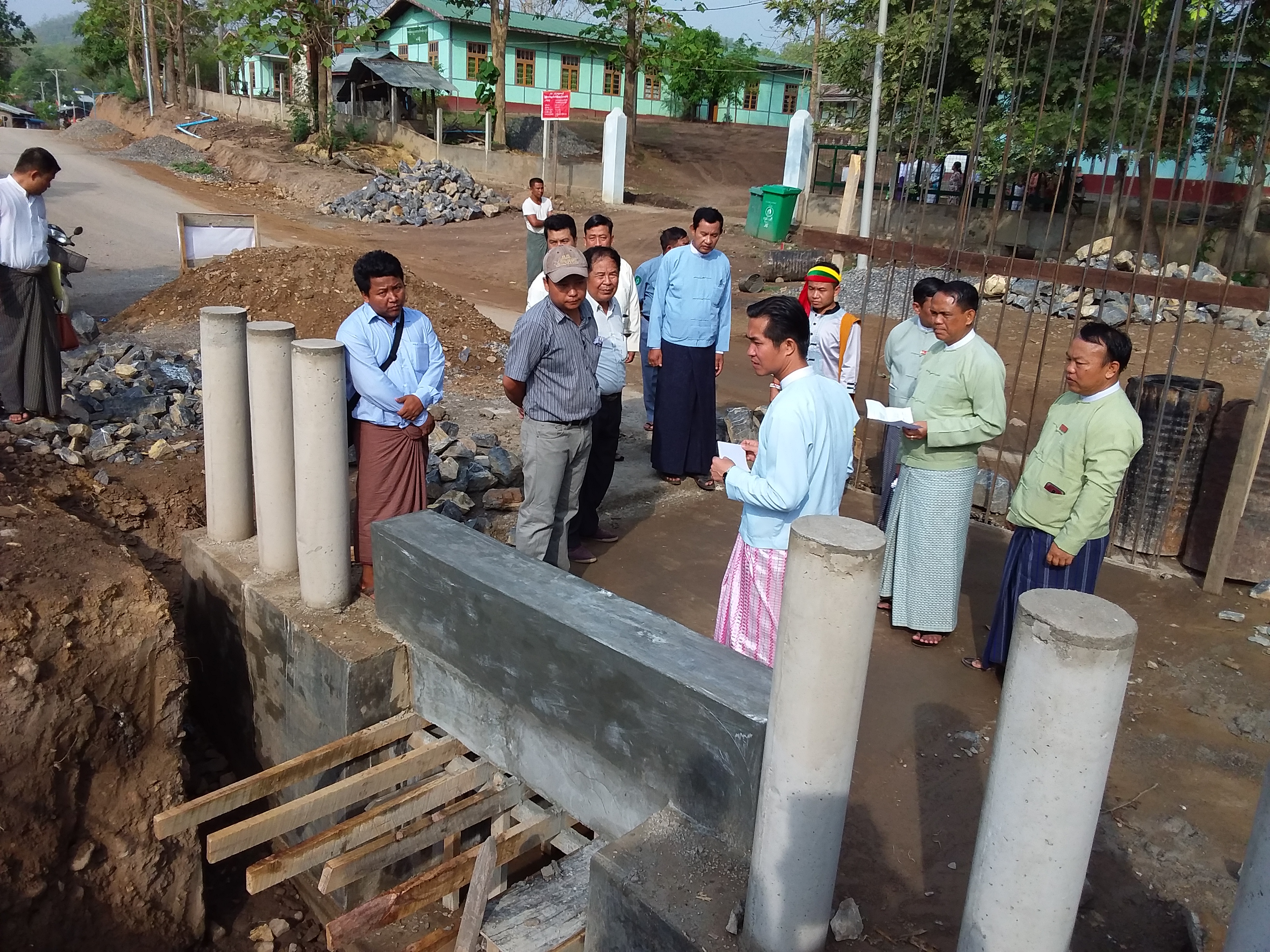 ပြည်နယ်ဝန်ကြီးချုပ်နှင့်အဖွဲ့သည် မြို့အင်္ဂါရပ်များနှင့် ညီညွတ်စေရေးအတွက် မြို့နယ်စည်ပင်သာယာရေးအဖွဲ့၏ ၂၀၁၈-၂၀၁၉ ဘဏ္ဍာနှစ် ပြည်နယ်ခွင့်ပြုရန်ပုံငွေများဖြင့် ကယန်းကြယ်စင်နှင့် ပြည်တော်ဦးကုမ္ပဏီတို့မှ တာဝန်ယူ ဆောင်ရွက်နေသော သံကူကွန်ကရစ်အဖုံးပါ ကျောက်စီရေမြောင်းနှင့် ပလပ်ဖောင်း တည်ဆောက်ခြင်းလုပ်ငန်း၊ အထက(မယ်စဲ့) ကျောင်းဝန်းအတွင်း ယခင်ခရီးစဉ်တွင် လမ်းညွှန်မှာကြားချက်များအပေါ် ဆောင်ရွက်ပြီးစီးမှု အခြေအနေများကို ကြည့်ရှုစစ်ဆေးပြီး လိုအပ်ချက်များကို သက်ဆိုင်ရာကုမ္ပဏီနှင့် တာဝန်ရှိသူများထံ လမ်းညွှန်မှာကြားခဲ့သည်။