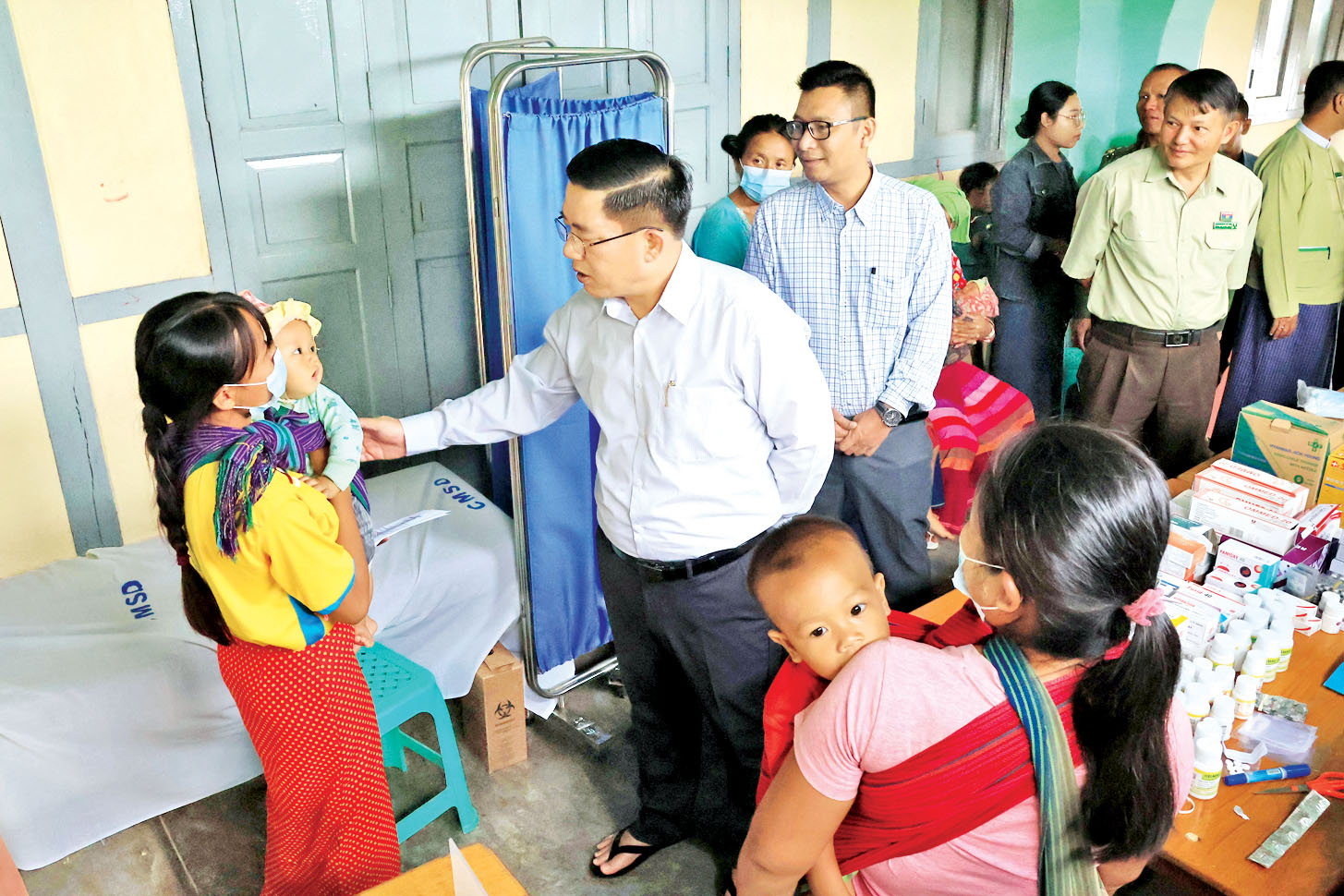 ယင်းနောက် ပြည်နယ်ဝန်ကြီးချုပ်နှင့် တာဝန်ရှိသူများသည် ပြည်နယ်ပြည်သူ့ကျန်းမာရေးဦးစီး ဌာနဝန်ထမ်းများက ကျန်းမာရေး စောင့်ရှောက်ပေးနေမှုကို ကြည့်ရှုအားပေးပြီး သက်ကြီးရွယ်အိုများ၊ ကလေးငယ်များနှင့် ကိုယ်ဝန်ဆောင် မိခင်များအနေဖြင့် ပြည်သူ့ဆေးရုံကြီးသို့ တက်ရောက်ကုသမှုခံယူရန် လိုအပ်ပါက အချိန်နှင့်တစ်ပြေးညီ ညွှန်းပို့နိုင်ရေး စီမံဆောင်ရွက်ပေးရန်မှာကြားပြီး ပြည်သူများအား ရင်းရင်းနှီးနှီး နှုတ်ဆက်အားပေးစကား ပြောကြား သည်။
