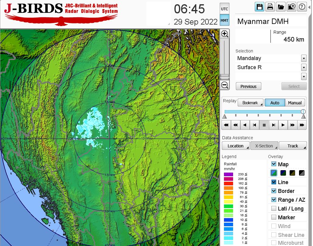 မန္တလေးမြို့နှင့် အနီးတစ်ဝိုက်အတွက် ယနေ့ညနေအထိ ခန့်မှန်းချက်အနေဖြင့် နေရာကွက်ကျား မိုးထစ်ချုန်းရွာမည်။ ရွာရန် ရာနှုန်း(၈၀)ဖြစ်သည်။