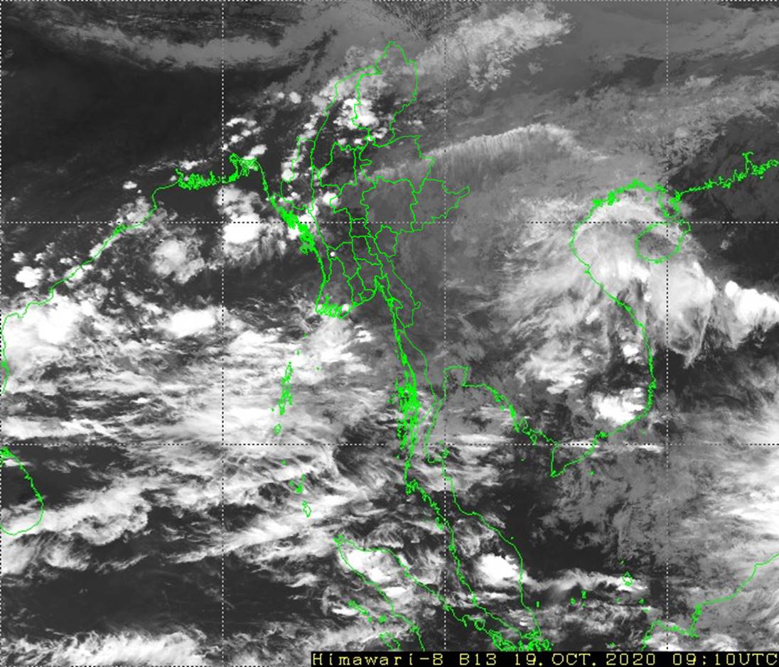ဘင်္ဂလားပင်လယ်အော်အခြေအနေ။ ကပ္ပလီပင်လယ်ပြင်နှင့် ဘင်္ဂလားပင်လယ်အော်တို့တွင် တိမ်အသင့်အတင့်မှ တိမ်ထူထပ်နေပါသည်။