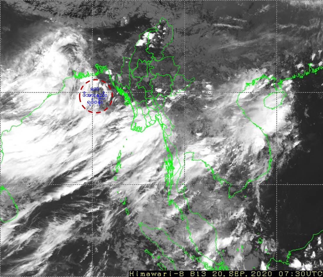 ဘင်္ဂလားပင်လယ်အော်အခြေအနေ။ ယနေ့မြန်မာစံတော်ချိန် (၁၀:၃၀)နာရီအချိန် တိုင်းထွာချက်များအရ ဘင်္ဂလားပင်လယ်အော်အရှေ့မြောက် ပိုင်းတွင် လေဖိအားနည်းရပ်ဝန်းတစ်ခု ဖြစ်ပေါ်နေပါသည်။ ကပ္ပလီပင်လယ်ပြင်နှင့် ဘင်္ဂလားပင်လယ်အော်တို့တွင် မုတ်သုံလေ အားကောင်းရာမှ အားအလွန်ကောင်းနေပါသည်။