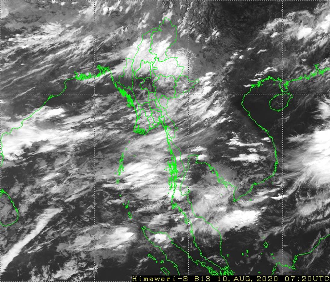ယနေ့နံနက်(၀၉:၃၀)နာရီအချိန်ထိမိုးလေဝသတိုင်းထွာချက်အကျဉ်းချုပ်။ လွန်ခဲ့သော(၂၄)နာရီအတွင်းက စစ်ကိုင်းတိုင်းဒေသကြီးအောက်ပိုင်းတွင် တိမ်အသင့်အတင့် ဖြစ်ထွန်းခဲ့ပြီး၊ မန္တလေးတိုင်းဒေသကြီးတွင် နေရာကွက်ကျား၊ နေပြည်တော်၊ မကွေးတိုင်းဒေသကြီးနှင့် ရှမ်းပြည်နယ်(မြောက်ပိုင်း)တို့တွင် နေရာကျဲကျဲ၊ စစ်ကိုင်းတိုင်းဒေသကြီးအထက်ပိုင်း၊ ရှမ်းပြည်နယ်(တောင်ပိုင်း)နှင့် ရခိုင်ပြည်နယ်တို့တွင် နေရာစိပ်စိပ်နှင့် ကျန်တိုင်းဒေသကြီးနှင့် ပြည်နယ်တို့တွင် နေရာအနှံ့အပြား မိုးထစ်ချုန်းရွာခဲ့ပါသည်။ မှတ်သားဖွယ်ရာ မိုးရေချိန်များမှာ ပူတာအိုမြို့တွင် (၂.၄၀)လက်မ၊ ဘုရားသုံးဆူမြို့တွင် (၁.၉၈)လက်မ၊ ဂွမြို့တွင် (၁.၈၉)လက်မ၊ နမ့်စန်မြို့တွင် (၁.၈၁)လက်မ၊ ဇောင်းတူမြို့တွင် (၁.၄၉)လက်မ၊ ခန္တီးမြို့တွင် (၁.၃၈)လက်မ၊ ဟုမ္မလင်းမြို့နှင့် နန်းယွန်းမြို့တို့တွင် (၁.၃၄)လက်မစီ၊ မြစ်ကြီးနားမြို့နှင့် ဘီးလင်းမြို့တို့တွင် (၁.၂၂)လက်မစီနှင့် ထားဝယ်မြို့တွင် (၁.၁၉)လက်မတို့ ဖြစ်ကြပါသည်။