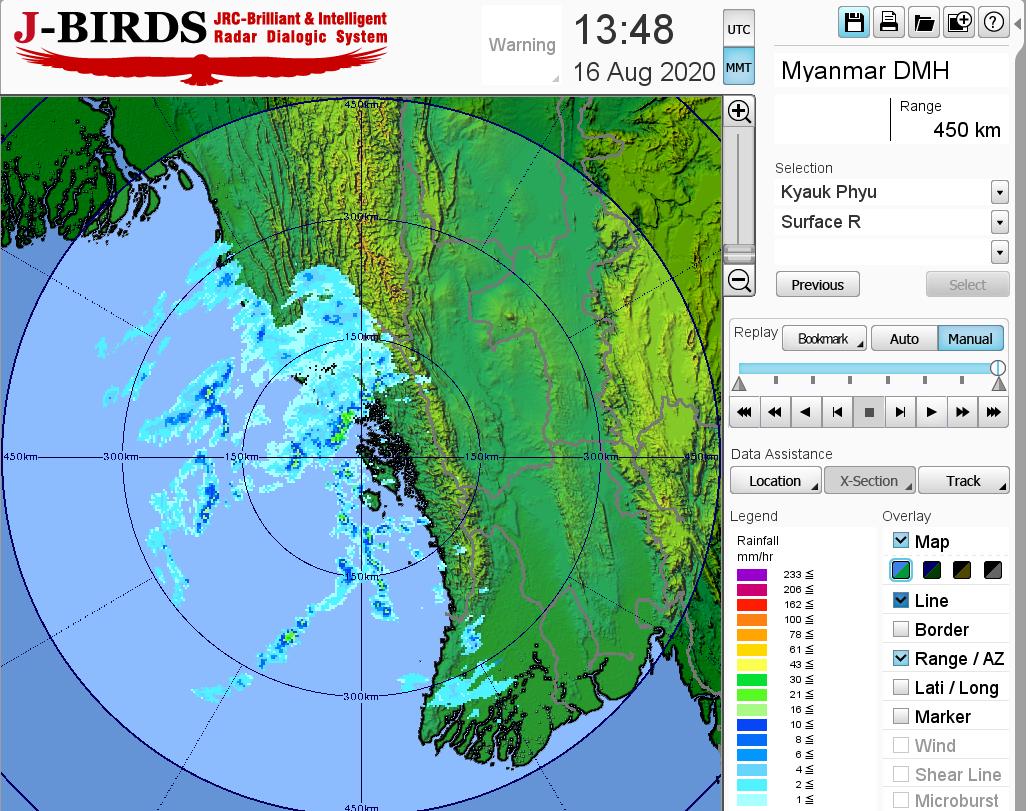 ဘင်္ဂလားပင်လယ်အော်အခြေအနေ။ ကပ္ပလီပင်လယ်ပြင်နှင့် ဘင်္ဂလားပင်လယ်အော်အရှေ့တောင်ပိုင်းတို့တွင် မုတ်သုံလေ အားအနည်းငယ်မှ အားအသင့်အတင့် ရှိနေပြီး၊ ကျန်ဘင်္ဂလားပင်လယ်အော်တွင် မုတ်သုံ လေ အားကောင်းနေပါသည်။