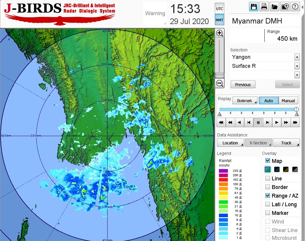 ဘင်္ဂလားပင်လယ်အော်အခြေအနေ။ ကပ္ပလီပင်လယ်ပြင်နှင့် ဘင်္ဂလားပင်လယ်အော်တောင်ပိုင်းတို့တွင် မုတ်သုံလေ အားအသင့်အတင့် ရှိနေပြီး၊ ကျန်ဘင်္ဂလားပင်လယ်အော်တွင် မုတ်သုံလေ အားနည်းနေပါသည်။