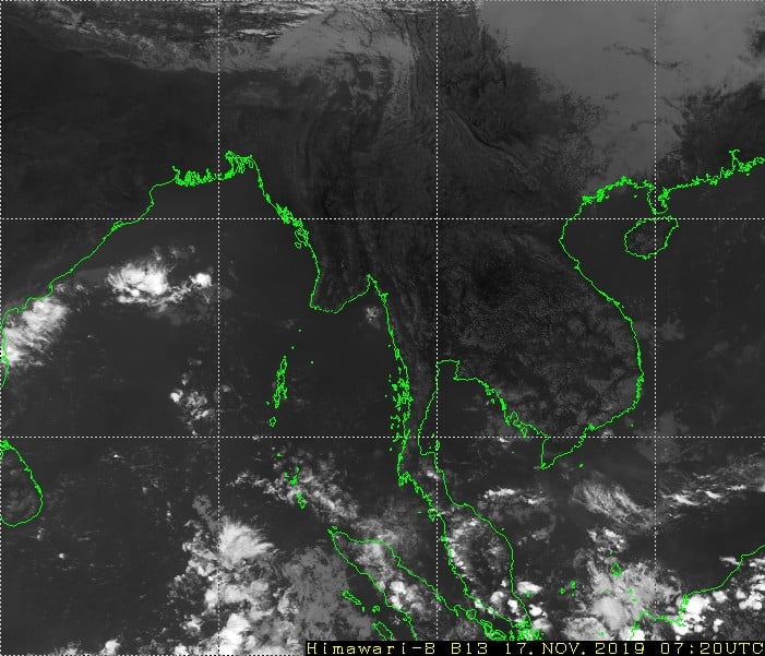 ဘင်္ဂလားပင်လယ်အော် အနောက်အလယ်ပိုင်းနှင့် အရှေ့တောင်ပိုင်းတို့တွင် တိမ်အသင့်အတင့် ဖြစ်ထွန်းနေပြီး ကပ္ပလီပင်လယ်ပြင်နှင့် ကျန်ဘင်္ဂလားပင်လယ်အော်တို့တွင် တိမ်အနည်းငယ် ဖြစ်ထွန်းနေသည်။