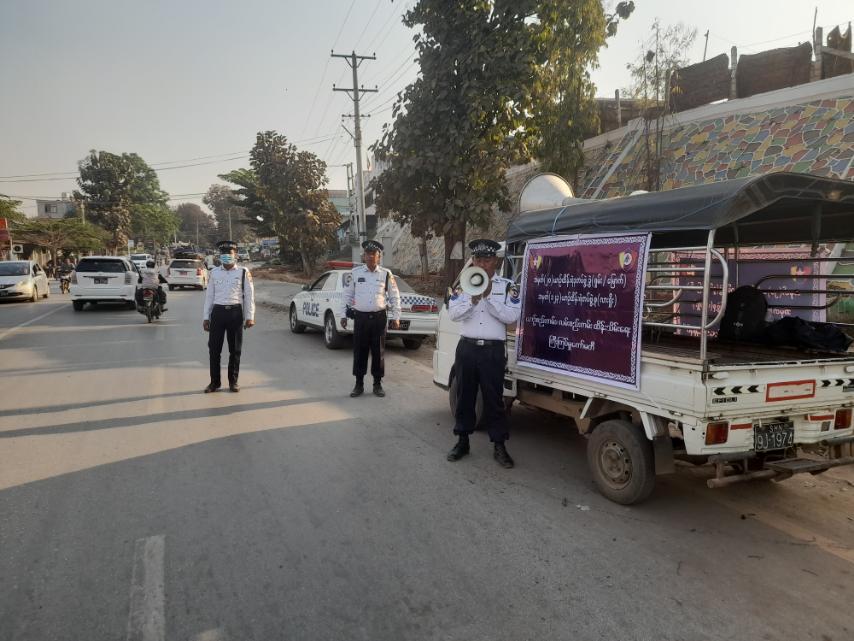 ရှမ်းပြည်နယ်(မြောက်ပိုင်း)၊ လားရှိုးမြို့တွင် ယာဉ်ကြောပိတ်ဆို့မှု မရှိစေရေးအတွက် “ဘာကြောင့်ရပ်ရပ် လမ်းဘေးချရပ်” ဗီနိုင်းပါယာဉ်ဖြင့် ပြည်သူများအား အသိပညာပေးကြေညာစာများ ထုတ်ပြန်ထားပြီး ဖေဖော်ဝါရီ ၁၆ ရက် နံနက်ပိုင်းမှစ၍ လိုက်လံဆော်ဩလျက်ရှိသည်။