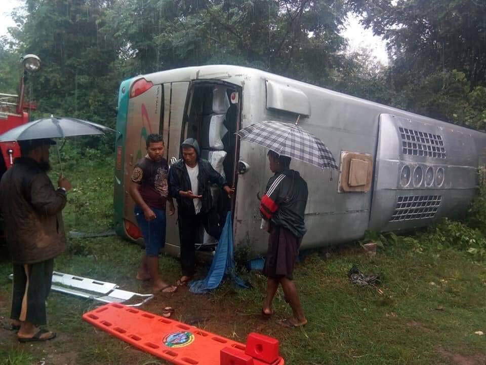 လားရှိုးမြို့နယ် နောင်မွန်အုပ်စု၊ ပုန်းထွန်ကျေးရွာနှင့်နောင်ကွဲကျေးရွာကြား၌ သြဂုတ် ၁၅ ရက်နေ့၊ နံနက် (၁၀)နာရီခွဲ အချိန်ခန့်က ဘုရားဖူးယာဉ်တစ်စီး အရှိန်လွန် တိမ်းမှောက်ကြောင်း သိရသည်။