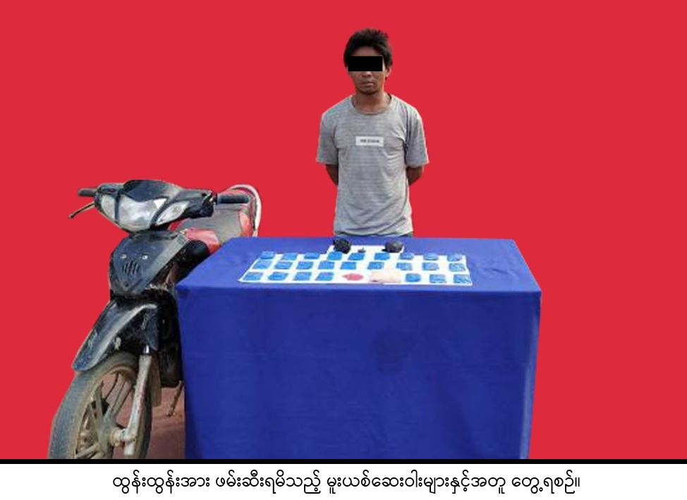 မူးယစ်ဆေးဝါး တားဆီးနှိမ်နင်းရေးရဲတပ်ဖွဲ့မှ တပ်ဖွဲ့ဝင်များ ပါဝင်သော ပူးပေါင်းအဖွဲ့သည် မေ ၁၉ ရက် ညနေပိုင်းက လားရှိုးမြို့နယ်၊ မန်အိုင်ကျေးရွာအုပ်စု၊ ကုန်းညောင်ကျေးရွာအနီးတွင် ထွန်းထွန်း(ခ)ယာကုတ် မောင်းနှင်လာသည့် မော်တော်ဆိုင်ကယ်အား ရပ်တန့်ရှာဖွေရာ စိတ်ကြွရူးသွပ် ဆေးပြား ၅,၀၀၀၊ ဘိန်းဖြူ သုည ဒသမ ၀၁ ကီလို သိမ်းဆည်းရမိခဲ့သဖြင့် ထွန်းထွန်း(ခ)ယာကုတ် (၃၄)နှစ်အား မူးယစ်ဆေးဝါးနှင့် စိတ်ကိုပြောင်းလဲစေသော ဆေးဝါးများဆိုင်ရာ ဥပဒေအရ အရေးယူထားကြောင်း  သိရသည်။