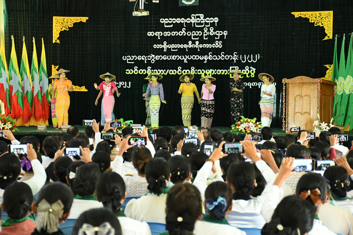 ထို့နောက် ပညာရေးဘွဲ့ စာပေးစာယူ ပထမနှစ် သင်တန်းသား သင်တန်းသူများက သီချင်းများဖြင့် ကပြဖျော်ဖြေကြသည်။ အဆိုပါ ပညာရေးဘွဲ့ စာပေးစာယူ ပထမနှစ်သင်တန်း (၂/၂၀၂၂) ကို ကိုဗစ်-၁၉ ရောဂါ ကာကွယ်ရေးလမ်းညွှန် ချက်များနှင့်အညီ ပညာရေးဒီဂရီကောလိပ် ၂၅ ကျောင်းတွင် ဖွင့်လှစ်ပို့ချလျက်ရှိပြီး သင်တန်းကာလမှာ အောက်တိုဘာ ၁၁ ရက်မှ နိုဝင်ဘာ ၂၃ ရက်အထိ ၄၃ ရက် ကြာမြင့်မည်ဖြစ်သည်။ သင်တန်းသို့ လားရှိုးခရိုင်၊ မူဆယ်ခရိုင်နှင့် ကျောက်မဲခရိုင်များမှ သင်တန်းသား သင်တန်းသူ  ၃၃၇ ဦး တက်ရောက် သင်ကြားလျက်ရှိကြောင်း သိရသည်။