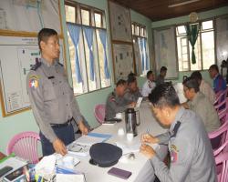 ဂန့်ဂေါမြို့နယ်တွင် ကျင်းပမည့် သင်္ကြန်ပွဲတော်တွင် မှုခင်းမဖြစ်ပွားရေး ဂန့်ဂေါခရိုင် ရဲတပ်ဖွဲ့နှင့် ရပ်ကွက်အသီးသီးမှ တာဝန်ရှိသူများ တွေ့ဆုံဆွေးနွေးပွဲကို