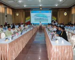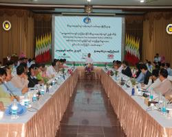 ပြည်ထောင်စုဝန်ကြီး ဦးသန့်စင်မောင် ဆိပ်ကမ်းကဏ္ဍ ဖွံ့ဖြိုးတိုးတက်ရေးလုပ်ငန်းများ ညှိနှိုင်းအစည်းအဝေး တက်ရောက်