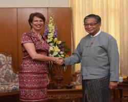 ပြည်ထောင်စုရှေ့နေချုပ် ဦးထွန်းထွန်းဦး ကုလသမဂ္ဂအတွင်းရေးမှူးချုပ်၏ မြန်မာနိုင်ငံဆိုင်ရာအထူးကိုယ်စားလှယ် Ms. Christine SchranerBurgener အား လက်ခံတွေ့ဆုံ