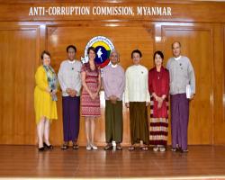 အဂတိလိုက်စားမှုတိုက်ဖျက်ရေးကော်မရှင် ဥက္ကဋ္ဌ ဦးအောင်ကြည်သည် ကုလသမဂ္ဂ အတွင်းရေးမှူးချုပ်၏ မြန်မာနိုင်ငံဆိုင်ရာ အထူးကိုယ်စားလှယ် Mrs. Christine Schraner Burgener နှင့် အဖွဲ့အား ယနေ့ ညနေ ၄ နာရီခွဲက နေပြည်တော်ရှိ အဂတိလိုက်စားမှုတိုက်ဖျက်ရေးကော်မရှင်ရုံး၊ ဧည့်ခန်းမ၌ လက်ခံတွေ့ဆုံသည်။