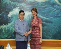 လူမှုဝန်ထမ်း၊ ကယ်ဆယ်ရေးနှင့် ပြန်လည်နေရာထားရေးဝန်ကြီးဌာန ပြည်ထောင်စု ဝန်ကြီး ဒေါက်တာဝင်းမြတ်အေးနှင့် ကုလသမဂ္ဂအတွင်းရေးမှူးချုပ်၏ မြန်မာနိုင်ငံဆိုင်ရာ အထူးကိုယ်စားလှယ် Mrs. Christine Burgener တို့သည် ယနေ့နံနက်ပိုင်းတွင် ဝန်ကြီးရုံး မေခလာခန်းမ၌ တွေ့ဆုံကြသည်။