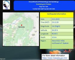 မြန်မာနိုင်ငံပြည်တွင်း ဖားကန့်မြို့၏ အနောက်မြောက်ဘက်တွင် အင်အား အနည်းငယ်ရှိ မြေငလျင်လှုပ်ရှား