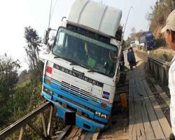 ထီးချိုင့်မြို့နယ်တွင် ကြံတင်ယာဉ်ဖြစ်သန်းရာမှ တံတားတစ်စင်း ရေလယ်တိုင်တိမ်းစောင်း
