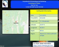 ၂၀၁၉ ခုနှစ်၊ မတ်လ (၁၃)ရက်နေ့ ည(၇:ဝ၀)နာရီအချိန် မိုးဇလမှ ထုတ်ပြန်ချက်အရ ဘင်္ဂလားပင်လယ်အော် မြောက်ပိုင်းတွင် တိမ်အနည်းငယ် ဖြစ်ထွန်းနေပြီး၊ ကပ္ပလီပင်လယ်ပြင်နှင့် ကျန်ဘင်္ဂလားပင်လယ်အော်တို့တွင် တိမ်အသင့်အတင့် ဖြစ်ထွန်းနေပါသည်။