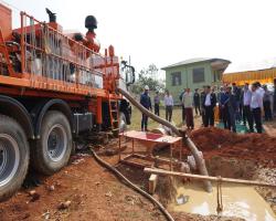 အများပြည်သူသုံး စက်ရေတွင်းတူးဖော်နေမှုအား ပြည်နယ်ဝန်ကြီးချုပ် ဒေါက်တာလင်းထွဋ် စစ်ဆေး