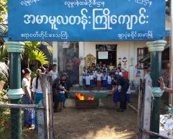 ဧရာဝတီတိုင်းဒေသကြီး ဖျာပုံခရိုင်အမာမြို့ လူမှုဝန်ထမ်းဦးစီးဌာန အမာမူလတန်းကြို ကျောင်းဆရာမကြီး ဒေါ်နွယ်နီနှင့် အမာမီးသတ်စခန်းမီးသတ်ဦးစီးမှူး ဖြိုးကိုကိုဦးတို့ ပူးပေါင်းပြီး မူကြိုကလေးငယ်များနှင့် ဆရာမများ မီးဘေးအရေးပေါ်ကြုံတွေ့လာပါက မီးငြှိမ်းသတ်နိုင်စေရန် ယနေ့ နံနက် ၉ နာရီခွဲက မူလတန်းကြိုကျောင်းရှေ့တွင် လက်တွေ့မီးငြှိမ်းသတ်သရုပ်ပြခဲ့ကြောင်း သိရသည်။
