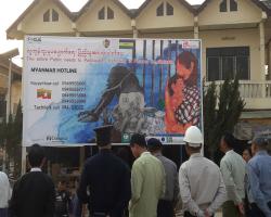ရှမ်းပြည်နယ်အရှေ့ပိုင်း တာချီလိတ်ခရိုင် မိုင်းယောင်းမြို့နယ်တွင် လူကုန်ကူးမှု ပပျောက်ရေး ပြည်သူအားလုံး ပါဝင်ပေးဟူသော ဆောင်ပုဒ်အတိုင်း လူကုန်ကူးမှု အသိပညာပေး ဗီနိုင်းပိုစတာကို ----------