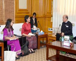 ပြည်သူ့လွှတ်တော် ဒုတိယဥက္ကဋ္ဌ၊ လွှတ်တော်များ ဖွံ့ဖြိုးတိုးတက်ရေးဆိုင်ရာ ပေါင်းစပ်ညှိနှိုင်း ဆောင်ရွက်ရေးအဖွဲ့ ဥက္ကဋ္ဌ ဦးထွန်းထွန်းဟိန် Westminster Foundation for Democracy (WFD) မှ မြန်မာနိုင်ငံဌာနေကိုယ်စားလှယ် ဒေါ်စောသီရိရူပအား လက်ခံတွေ့ဆုံ