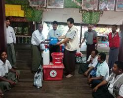 ဆယ်ရွာကျေးရွာ မီးလောင်မှုအတွင်း ပျက်စီးဆုံးရှုံးခဲ့သည့် အိမ်ထောင်စုများအား မြန်မာနိုင်ငံကြက်ခြေနီအသင်းက ထောက်ပံ့ပစ္စည်းပေးအပ်