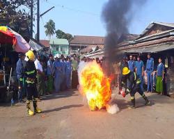 ဓနုဖြူမြို့မဈေးအတွင်း မီးဘေးအန္တရာယ်ကြိုတင်ကာကွယ်ရေး ဇာတ်တိုက်လေ့ကျင့်