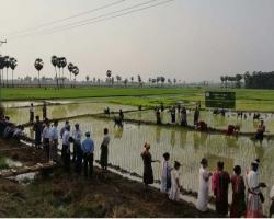 ဂျိုင်းလျှပ်စစ်မြစ်ရေတင်ဖြင့် စိုက်ပျိုးသော နွေးစပါးထွန်တုံးပိတ်စုပေါင်းစိုက်ပျိုးပွဲကို တောင်သူများနှင့်အတူကျင်းပ