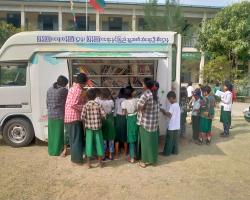နတ်မောက်မြို့နယ်တွင် ရွေ့လျားစာကြည့်တိုက်မော်တော်ယာဉ်ဖြင့် အ.ထ.က(၃)အောင်ဆန်းကျောင်းသို့ စာအုပ်၊ စာစောင်များ သွားရောက်ငှားရမ်းပေး