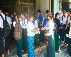 ပြည်ထဲရေးဝန်ကြီးဌာန၊ တပ်ဖွဲ့ဝင်/ဝန်ထမ်း အရာထမ်း၊ အမှုထမ်းမိသားစုများက မြို့နယ်များရှိ ဘုန်းတော်ကြီးကျောင်းများသို့ ဆွမ်းဆန်တော်နှင့် ဆန်ကြာဆံများ ဆက်ကပ်လှူဒါန်းလျက်ရှိသည်။