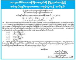 စစ်အုပ်ချုပ်ရေး (Martial Law) အမိန့်အမှတ်၊ ၇ /၂၀၂၃ ထုတ်ပြန်