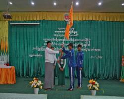 ပညာရေးဒီဂရီကောလိပ်ပေါင်းစုံအားကစားပြိုင်ပွဲသို့ သွားရောက်ယှဉ်ပြိုင်မည့် အားကစားသမားများအား အောင်နိုင်ရေးအလံပေးအပ်ပွဲအခမ်းအနားကျင်းပ