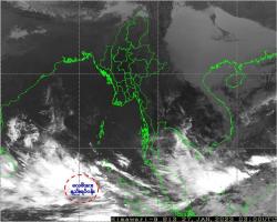"ယနေ့မြန်မာစံတော်ချိန် (၀၉:၃၀)နာရီအချိန်တိုင်းထွာချက်များအရ ဘင်္ဂလားပင်လယ်အော်အရှေ့တောင်ပိုင်းနှင့် ယင်းနှင့်ဆက်စပ်လျက်ရှိသော အီကွေတာအနီးအိန္ဒိယသမုဒ္ဒရာအရှေ့ပိုင်းတို့တွင် လေဖိအားနည်းရပ်ဝန်း(Low Pressure Area) တစ်ခုဖြစ်ပေါ်နေပါသည်။"