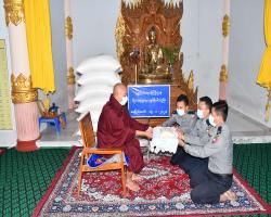 ပြည်ထဲရေးဝန်ကြီးဌာန၊ တပ်ဖွဲ့ဝင်/ဝန်ထမ်း အရာထမ်း၊ အမှုထမ်းမိသားစုများက မြို့နယ်အသီးသီးရှိ ဘုန်းတော်ကြီးကျောင်းများသို့ ဆွမ်းဆန်တော်နှင့် ဆန်ကြာဆံများ ဆက်ကပ် လှူဒါန်းလျက်ရှိသည်။