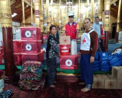 နမ့်ဆန်မြို့တွင် မြန်မာနိုင်ငံကြက်ခြေနီအသင်းမှ နေရပ်စွန့်ခွာပြည်သူများအား ထောက်ပံ့ပစ္စည်းများပေးအပ်
