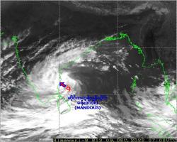 ဆိုင်ကလုန်းမုန်တိုင်း(Cyclonic Storm) “မန်းဒပ်(စ်) (MANDOUS)”၏ လက်ရှိအခြေအနေမှာ မြန်မာနိုင်ငံဘက်သို့ ဦးတည်ရွေ့လျားမည့် အခြေအနေမရှိပါသဖြင့် အဝါရောင်အဆင့်ဟု သတ်မှတ်ပါသည်။