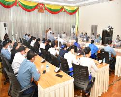 မြို့ပြများ ဘက်စုံသန့်ရှင်းသာယာလှပစေရေး မြို့နယ်စည်ပင်သာယာရေးအဖွဲ့များနှင့် တွေ့ဆုံပွဲကို ယနေ့နံနက်ပိုင်းတွင် ပဲခူးတိုင်းဒေသကြီးအစိုးရအဖွဲ့ရုံး တော်ဝင်ဟံသာ အစည်း အဝေးခန်းမ၌ ကျင်းပသည်။