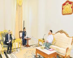 နိုင်ငံတော်စီမံအုပ်ချုပ်ရေးကောင်စီဥက္ကဋ္ဌ နိုင်ငံတော်ဝန်ကြီးချုပ် ဗိုလ်ချုပ်မှူးကြီး မင်းအောင်လှိုင်သည် အိန္ဒိယနိုင်ငံ၊ ပြည်ပရေးရာဝန်ကြီးဌာန၊ နိုင်ငံခြားရေးအတွင်းဝန် H.E. Mr. Vinay Mohan Kwatra အား ယနေ့နေ့လယ်ပိုင်းတွင် နေပြည်တော်ရှိ နိုင်ငံတော်စီမံအုပ်ချုပ်ရေးကောင်စီဥက္ကဋ္ဌရုံး ဧည့်ခန်းမ၌ လက်ခံတွေ့ဆုံသည်။