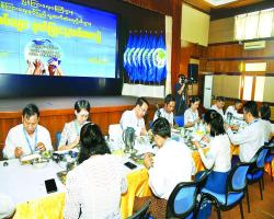 ပြည်ထောင်စုဝန်ကြီး ဦးမောင်မောင်အုန်း ပြန်ကြားရေးနှင့်ပြည်သူ့ဆက်ဆံရေးဦးစီးဌာနမှ ဝန်ထမ်းများနှင့်အတူ နေ့လယ်စာသုံးဆောင်