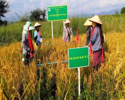 မိုးနဲမြို့နယ်၌ မိုးသီးနှံ ယာစပါးယှဉ်ပြိုင်စမ်းသပ်ကွက်များ စံကွက်ရိတ်သိမ်း