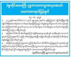 ပဲခူးတိုင်းဒေသကြီး ဗုဒ္ဓဘာသာကလျာဏယုဝအသင်း သဘောထားထုတ်ပြန်ချက်