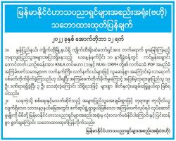 မြန်မာနိုင်ငံဟာသပညာရှင်များအစည်းအရုံး(ဗဟို) သဘောထားထုတ်ပြန်ချက်