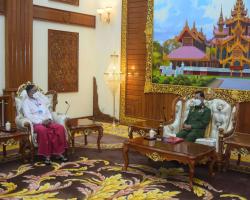 နိုင်ငံတော်စီမံအုပ်ချုပ်ရေးကောင်စီဥက္ကဋ္ဌ တပ်မတော်ကာကွယ်ရေးဦးစီးချုပ် ဗိုလ်ချုပ်မှူးကြီး မင်းအောင်လှိုင် သည် မွန်ပြည်သစ်ပါတီ (NMSP) ဒုတိယဥက္ကဋ္ဌ နိုင်အောင်မင်း ဦးဆောင်သည့်