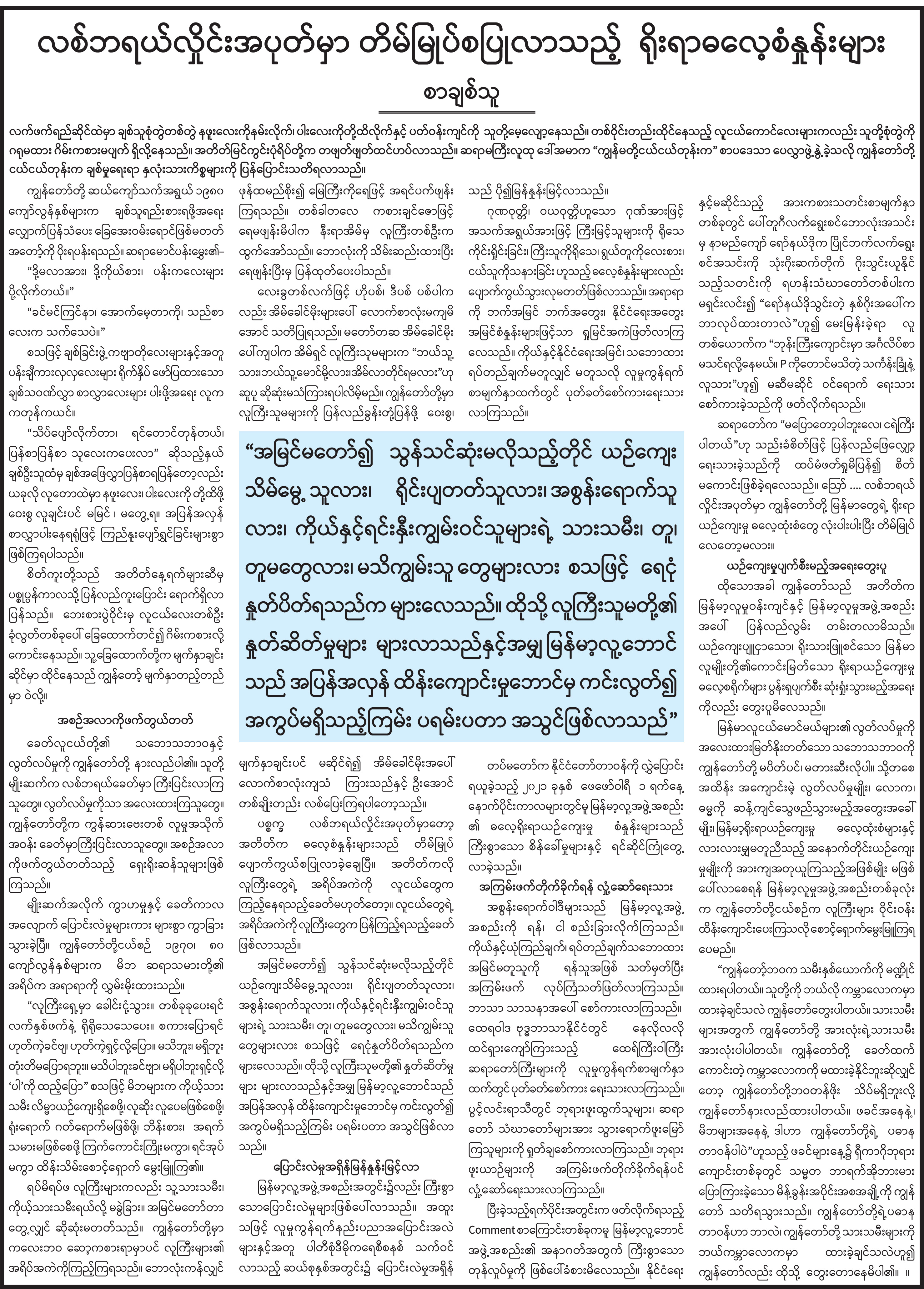 အယ်ဒီတာထံ ပေးစာ