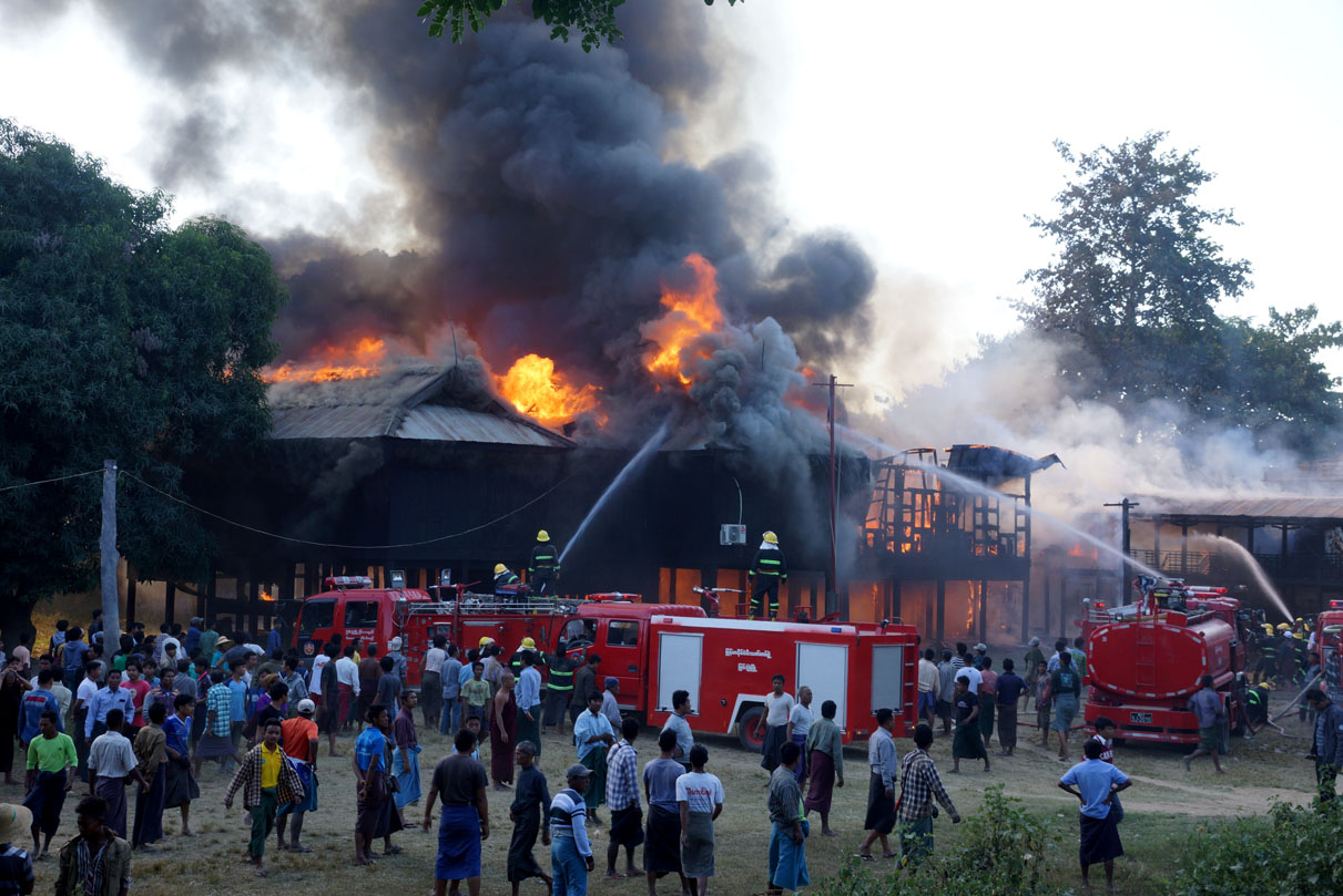 မီးလောင်မှုမှာ မြင်းခြံမြို့နယ် လေးအိမ်တန်းကျေးရွာရှိ “ဗိုလ်ချုပ်” ဘုန်းတော်ကြီးကျောင်းရှိ ဦးသိန်းဝင်း(ဘွဲ့) ဦးသာသန (သက်တော် (၅၇) နှစ်) မှ လျှပ်စစ်ရေနွေးအိုးတည်ရာ အပူလွန်ကဲပြီး ကျောင်းအဆောက်အဦးသို့ မီးကူးစက်လောင်ကျွမ်းခဲ့ခြင်းဖြစ်သည်။ အဆိုပါ မီးလောင်မှုဖြစ်ပွားရာသို့ မြို့နယ်မီးသတ်ဦးစီးမှူး ဦးအောင်ကိုသန့် ဦးဆောင်သော မီးငြှိမ်းသတ်ယာဉ် (၁၀) စီး၊ ရေသယ်ယာဉ် (၂) စီး၊ ပုဂ္ဂလိက ရေသယ်ယာဉ် (၂) စီး စုစုပေါင်း (၁၄) စီးဖြင့် မီးငြှိမ်းသတ်ခဲ့သည်။