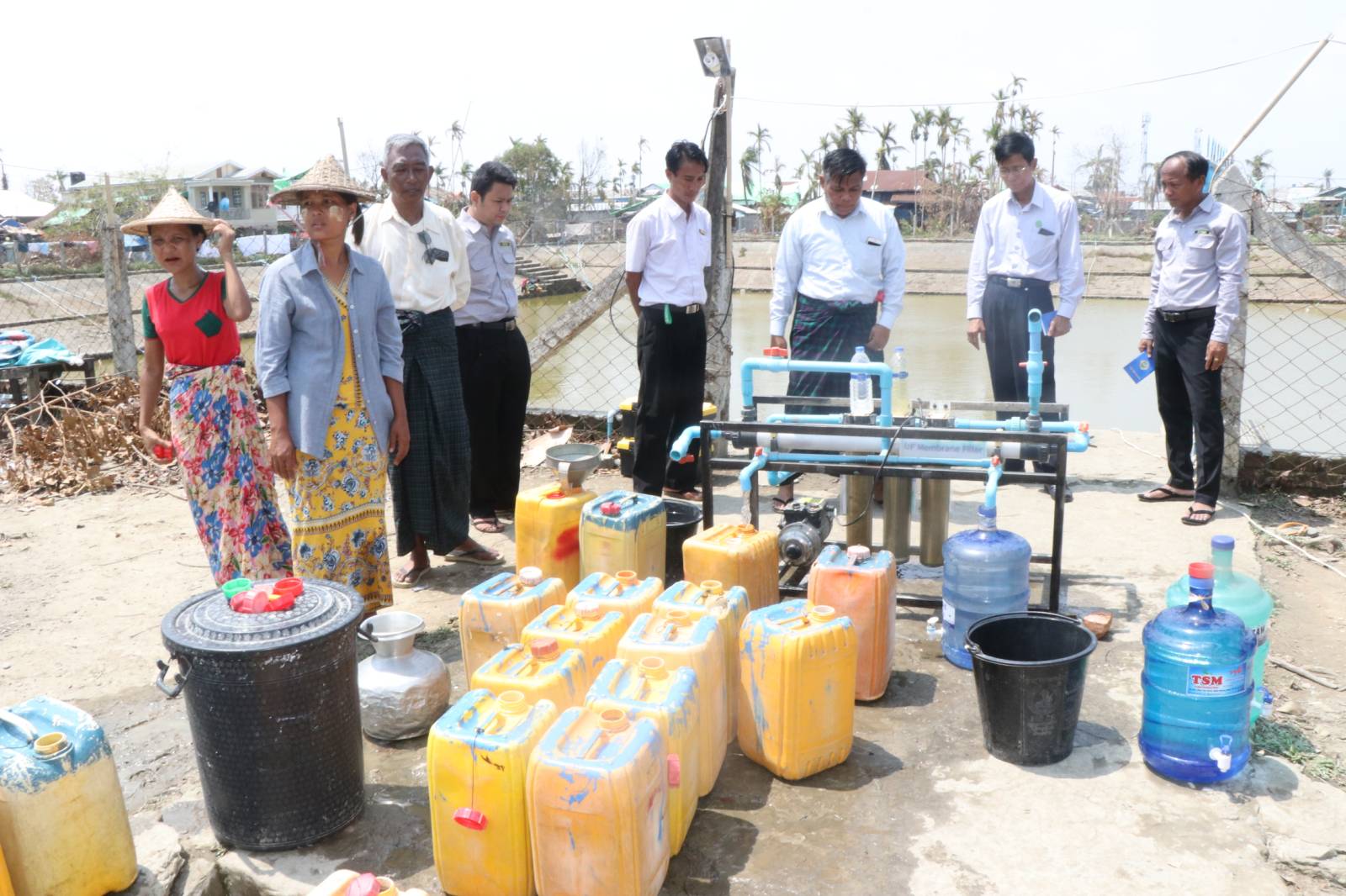 သမဝါယမနှင့် ကျေးလက်ဖွံ့ဖြိုးရေးဝန်ကြီးဌာနသည် ရခိုင်ပြည်နယ်အတွင်း လေဘေးသင့်ခဲ့သည့် ဒေသများအနက် စစ်တွေ၊ ရေသေ့တောင်၊ မင်းပြားမြို့များတွင် သန့်ရှင်းသော သောက်သုံးရေ ရရှိရေးအတွက် ရွေ့လျားရေသန့်စင်ယာဉ် ငါးစီးဖြင့်လည်းကောင်း၊ စစ်တွေ၊ ပုဏ္ဏားကျွန်း၊ မင်းပြား၊ ရသေ့တောင်၊ ကျောက်တော်၊ မြောက်ဦး၊ ပေါက်တောမြို့နယ်များအတွက် life Straw ရေသန့်စက် အလုံး ၅၀ ဖြင့်လည်းကောင်း စီစဉ်ဆောင်ရွက်လျက်ရှိသည်။