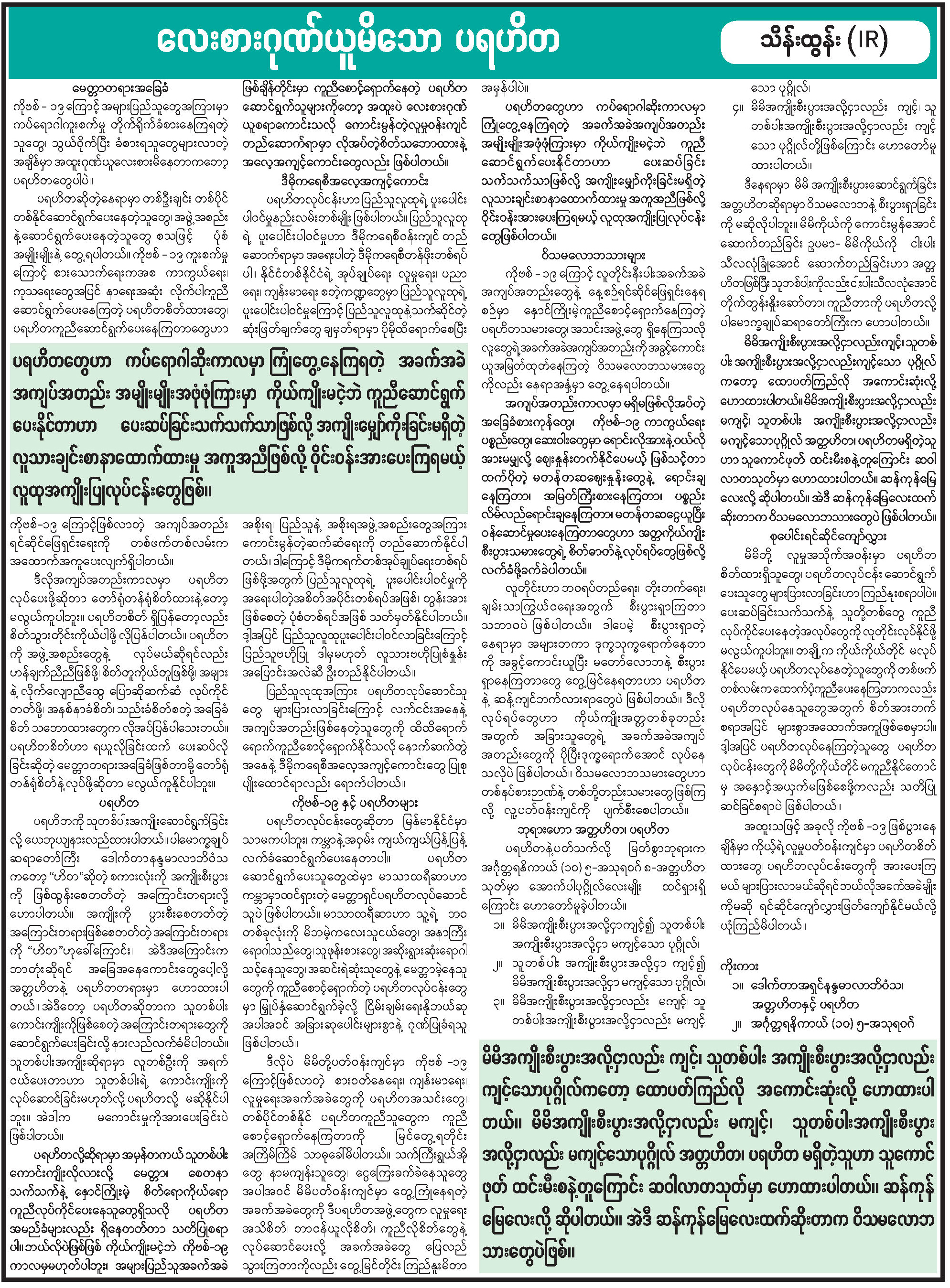 ပြည်ထောင်စုသမ္မတမြန်မာနိုင်ငံတော် ယာယီသမ္မတ နိုင်ငံတော်လုံခြုံရေးနှင့် အေးချမ်းသာယာရေး ကော်မရှင်ဥက္ကဋ္ဌ ဗိုလ်ချုပ်မှူးကြီး သတိုးမဟာသရေစည်သူ သတိုးသီရိသုဓမ္မ မင်းအောင်လှိုင်ထံမှ (၇၄) နှစ်မြောက် ကယားပြည်နယ်နေ့အခမ်းအနားသို့ပေးပို့သည့် သဝဏ်လွှာ
